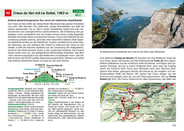 Handzaam gidsje, dat zó in je broekzak past, met (meestal zo'n vijftig) wandelingen, die in lengte variëren van een paar uur tot maximaal een dag. Met een duidelijke onderverdeling in een paar moeilijkheidscategorieën (eenvoudig tot pittig). De eenvoudige (blauwe) wandelingen zijn ook goed met kinderen te doen. De wandelingen zijn ingetekend op - vrij simpele - kaartjes. De routebeschrijvingen zijn prima en er wordt aangegeven waar je onderweg iets kunt eten, drinken en, waar dat van pas komt, overnachten. Duitstalig.