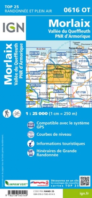 wandelkaart 0616OT Morlaix, Vallée Queffleuth /PNR Armorique1:25.000
