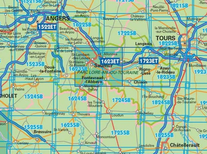 wandelkaart 1623ET Saumur, Bourgueil 1:25.000