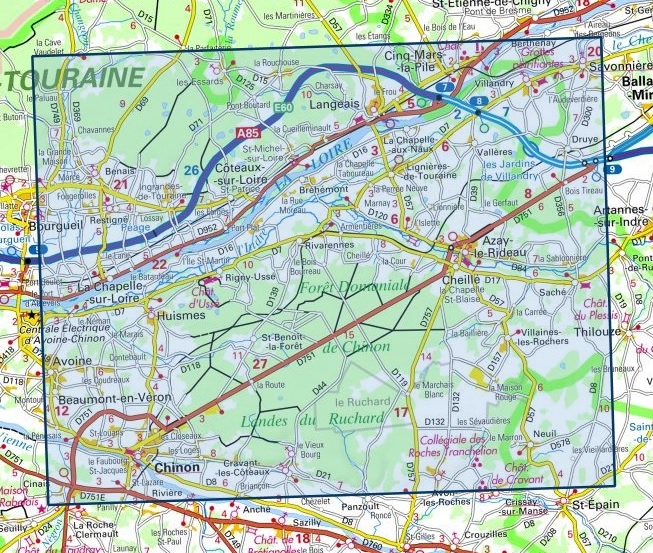 wandelkaart 1723ET Chinon, Langeais 1:25.000
