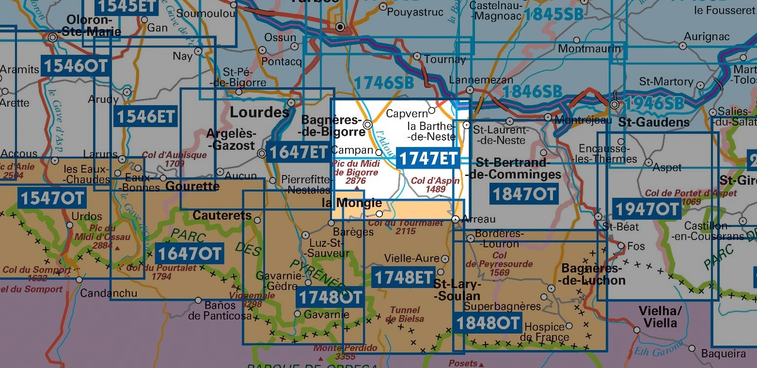 wandelkaart 1747ET Bagnères-de-Bigorre, Campan 1:25.000