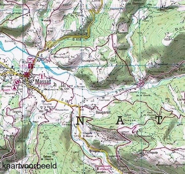 Kortom, perfect om mee te wandelen. Wij doen de kaart in een transparant plastic hoesje (handig voor in de rugzak of tijdens het wandelen) en we stoppen er een door ons samengestelde Frans-Nederlandse wandelwoordenlijst (ca. 500 woorden) bij in.