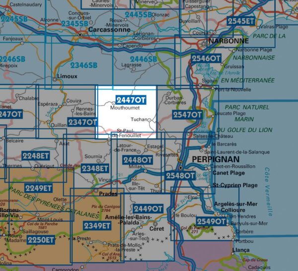 wandelkaart 2447OT Mouthoumet, Tuchan 1:25.000