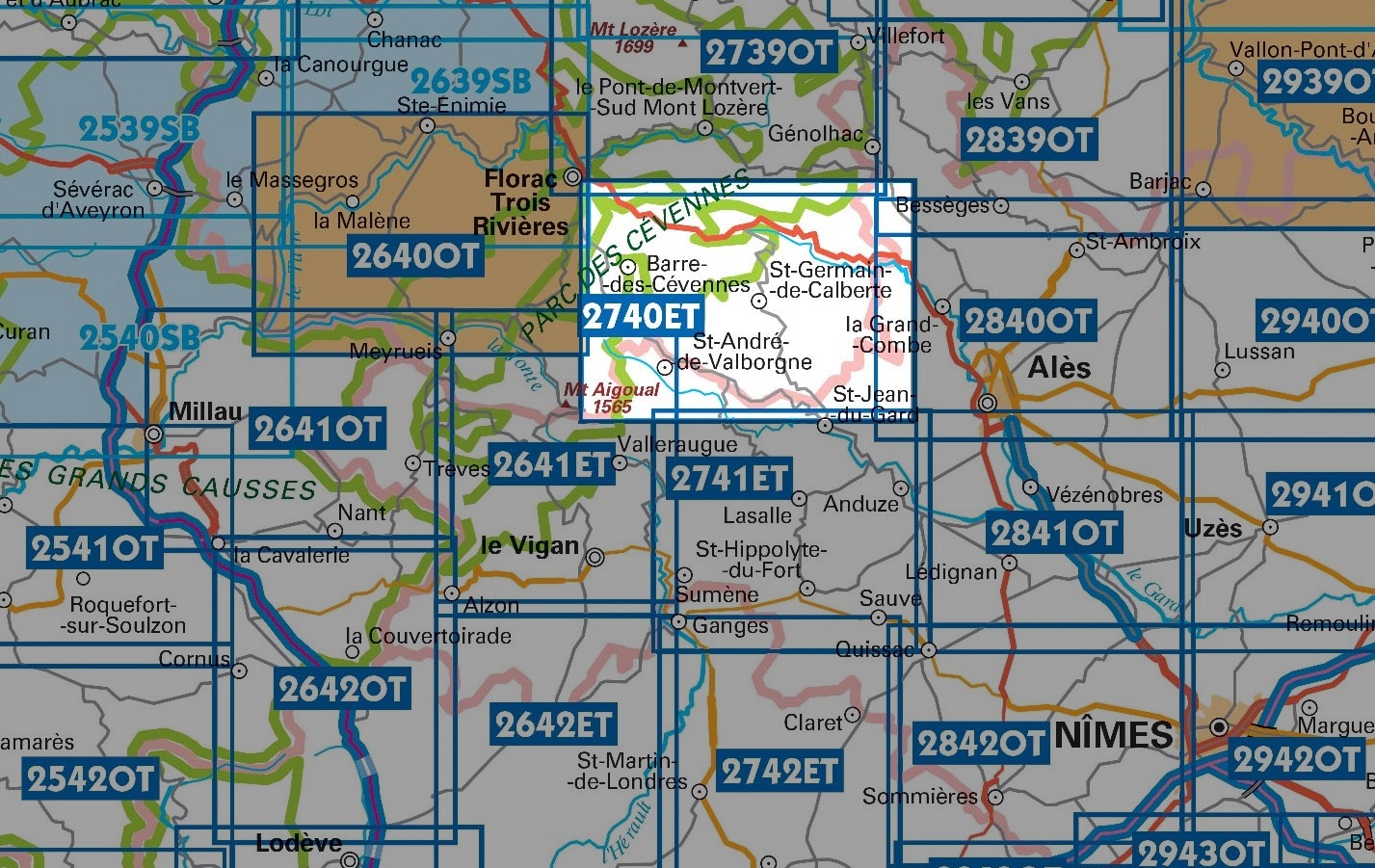 wandelkaart 2740ET Corniche-des-Cévennes 1:25.000