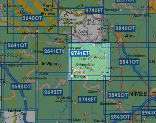 wandelkaart 2741ET St-Hyppolyte-du-Fort, Anduze 1:25.000