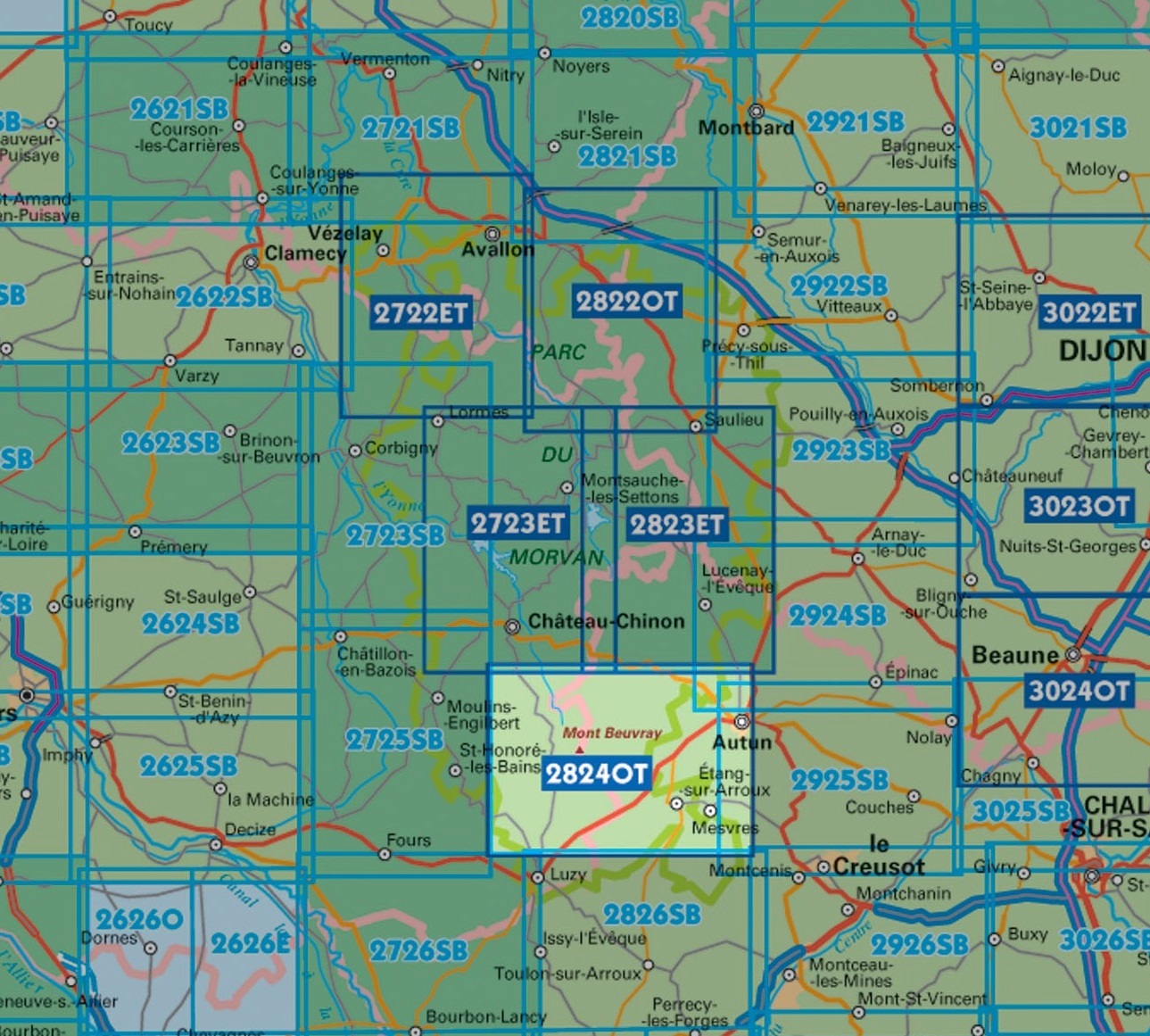wandelkaart 2824OT Autun, Mont Beuvray 1:25.000