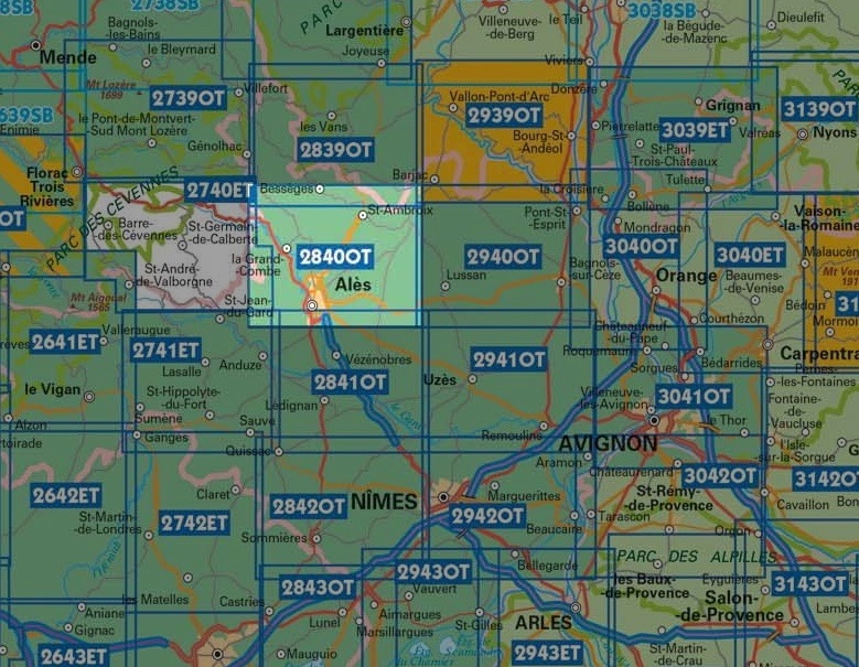 wandelkaart 2840OT Alès, La-Grand-Combe 1:25.000