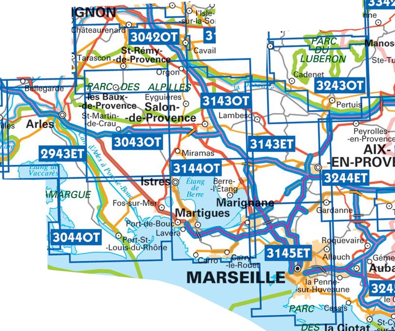 Tip: klik op de serienaam, dan verschijnen alle IGN 25 kaarten van deze regio, op volgorde.