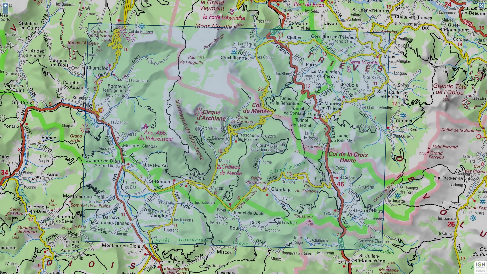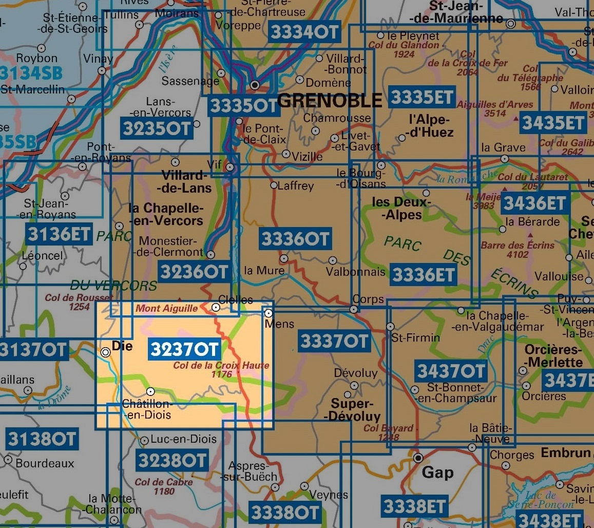 Tip: klik op de serienaam, dan verschijnen alle IGN 25 kaarten van deze regio, op volgorde.