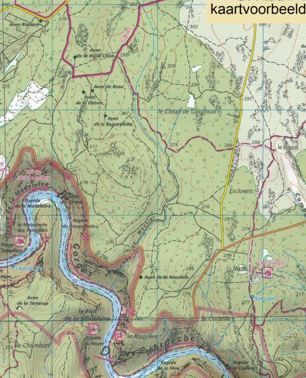 Dit is een deel uit de T-serie van de IGN 25 kaarten. Deze kaarten hebben een kaartnummer dat eindigt op T, dat staat voor 'touristique'. Dat betekent dat de kaarten veel toeristische informatie geven, zoals wandelroutes. Zowel grandes randonnées (langeafstandswandelpaden) als petites randonnées staan erop. En daarnaast symbolen voor campings, gîtes d'étape, bezienswaardigheden, enzovoorts. Verder zijn deze topografische kaarten uitermate gedetailleerd, met nauwkeurige registratie van heel veel landschapselementen, waaronder alle mogelijkeverkeerswegen, bebouwing, landgebruik, bos, open gebied, beekjes en overige binnenwateren, perceelsgrenzen, boomsingels, enzovoorts. Ieder boerenstalletje staat erop! Reliëf wordt aangegeven met hoogtelijnen en schaduwering.