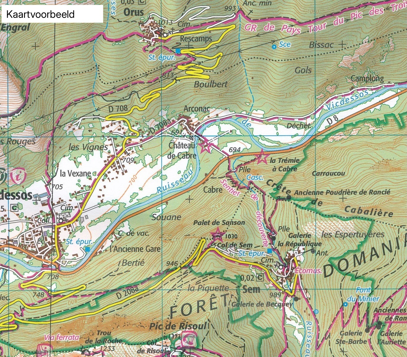 Kortom, perfect om mee te wandelen. Wij doen de kaart in een transparant plastic hoesje (handig voor in de rugzak of tijdens het wandelen) en we stoppen er een door ons samengestelde Frans-Nederlandse wandelwoordenlijst (ca. 500 woorden) bij in.