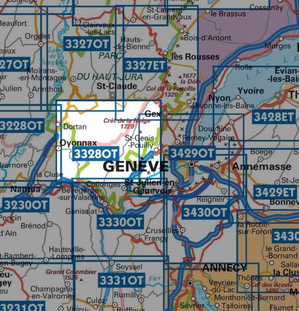 wandelkaart 3328OT Crêt de la Neige, Oyonnax 1:25.000