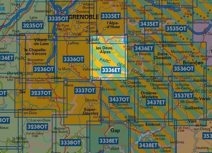 Dit is een deel uit de T-serie van de IGN 25 kaarten. Deze kaarten hebben een kaartnummer dat eindigt op T, dat staat voor 'touristique'. Dat betekent dat de kaarten veel toeristische informatie geven, zoals wandelroutes. Zowel grandes randonnées (langeafstandswandelpaden) als petites randonnées staan erop. En daarnaast symbolen voor campings, gîtes d'étape, bezienswaardigheden, enzovoorts.