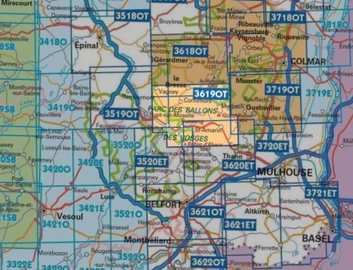 Tip: klik op de serienaam, dan verschijnen alle IGN 25 kaarten van deze regio, op volgorde.