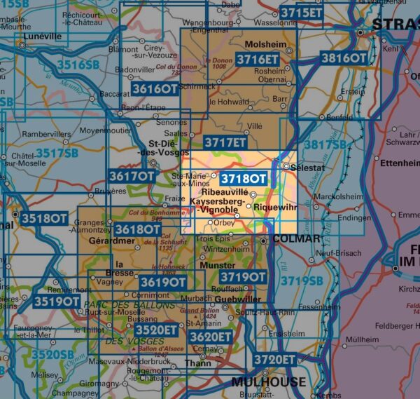 wandelkaart 3718OT Sélestat, Col du Bonhomme, Riquewihr 1:25.000