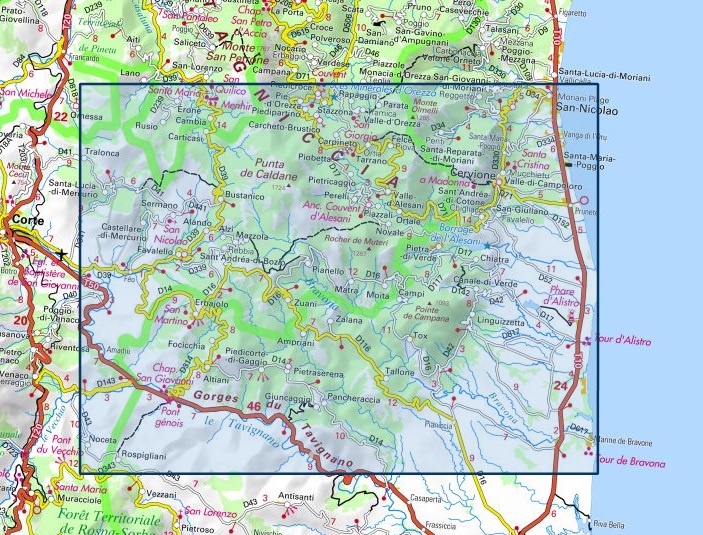 Kaarten en gidsen > Wandelen > Wandelkaarten > Europa > Frankrijk > Zuidoost-Frankrijk > Corsica > wandelkaart 4351OT Cervione, Sermano 1:25.000