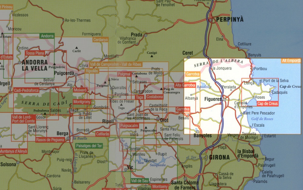 Kaarten en gidsen > Wandelen > Wandeltochten > Meerdaagse wandelroutes > Europa > Zuid-Europa / Middellandse Zee > Spanje > Catalonië > wandelkaart Alt Emporda, Cap de Creus, Salines, Bassegoda 1:50.000