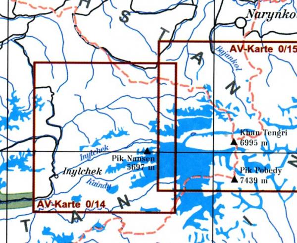 Kaarten en gidsen > Wandelen > Wandelkaarten > Azië > Nabije Oosten en Centraal-Azië > Zijderoute (de landen van de) > wandelkaart AV-0/14 Inylchek, Tien Shan - West Alpenvereinskarte wandelkaart