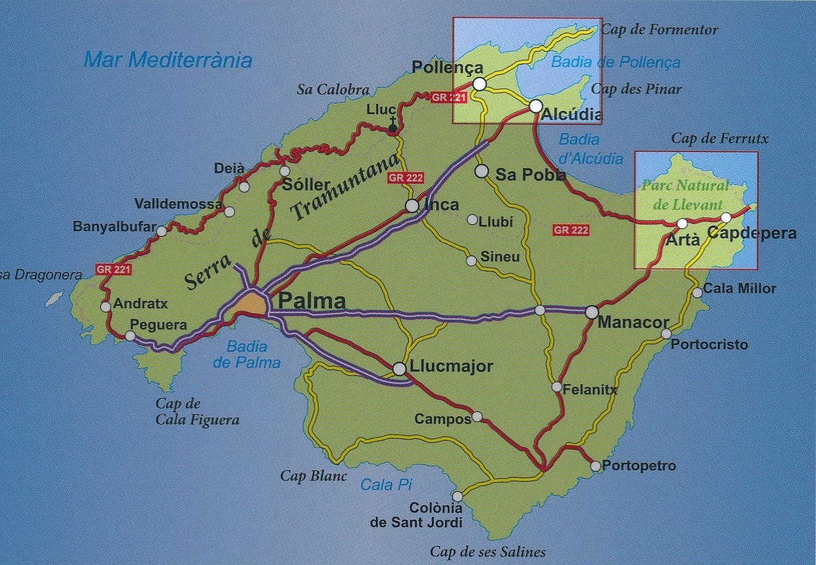 set van 2 kaarten: Formentor – Pinar – Ferrutx – Pollença – Alcudia – Arta – Capdepera