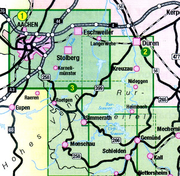 Kaarten en gidsen > Wandelen > Wandelkaarten > Europa > Duitsland > West-Duitsland > Rheinland-Pfalz (met Eifel) > Eifel > wandelkaart EV-01 Aachen - Eschweiler - Stolberg 1:25.000