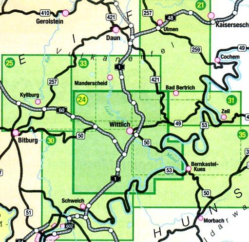 Kaarten en gidsen > Wandelen > Wandelkaarten > Europa > Duitsland > West-Duitsland > Rheinland-Pfalz (met Eifel) > Eifel > wandelkaart EV-24 Wittlicher Land 1:25.000