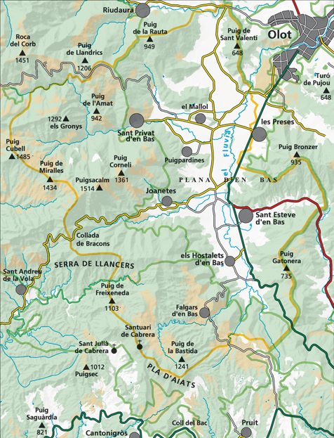 Uiterst gedetailleerde wandelkaart van dit stukje Pyreneeën bij Olot.