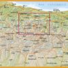 Topographic map with hikers trails of long distance and short distance