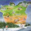 Gedetailleerde topografische kaart met intekening van vele wandelroutes.