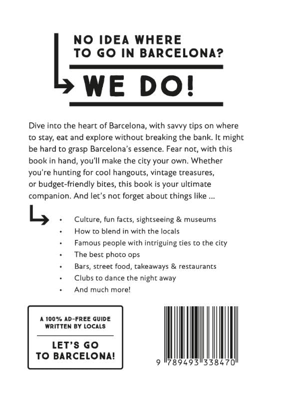 No idea where to go in Barcelona? We do! Dive into the heart of Barcelona, with savvy tips on where to stay, eat and explore without breaking the bank. It might be hard to grasp Barcelona’s essence. Fear not, with this book in hand, you’ll make the city your own. Whether you’re hunting for cool hangouts, vintage treasures, or budget-friendly bites, this book is your ultimate companion. And let’s not forget about things like ... • Culture, fun facts, sightseeing & museums • How to blend in with the locals • Famous people with intriguing ties to the city • The best photo ops • Taverne, street food, takeaways & restaurants • Clubs to dance the night away • And much more!