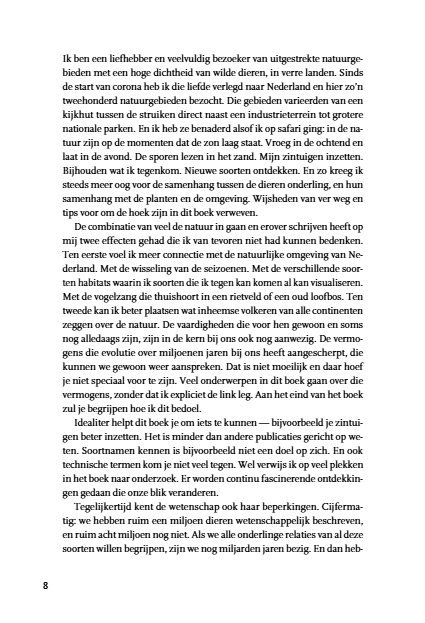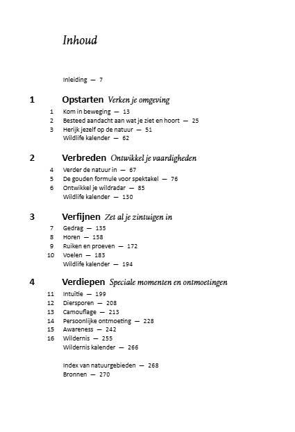 Met tips, verhalen en inzichten leert de auteur je om dieren te vinden, te herkennen en te begrijpen. En zie je dat er in de Nederlandse natuur veel meer te ontdekken is dan je misschien dacht. Een boek dat alle zintuigen aanscherpt en haalbare doelen stelt.