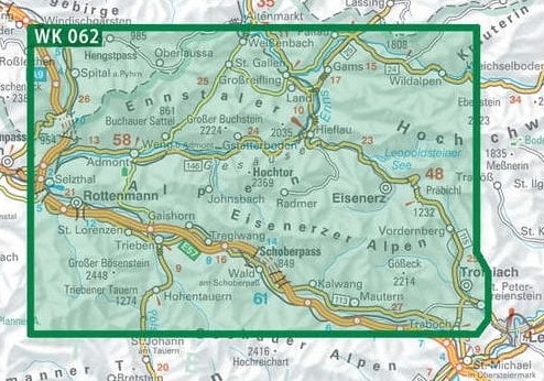 Kaarten en gidsen > Wandelen > Wandelkaarten > Europa > Zwitserland en Oostenrijk (en Alpen als geheel) > Oostenrijk > Salzburger Land & Stiermarken > WK-062 Gesäuse-Ennstaler Alpen-Schoberpass wandelkaart 1:50.000