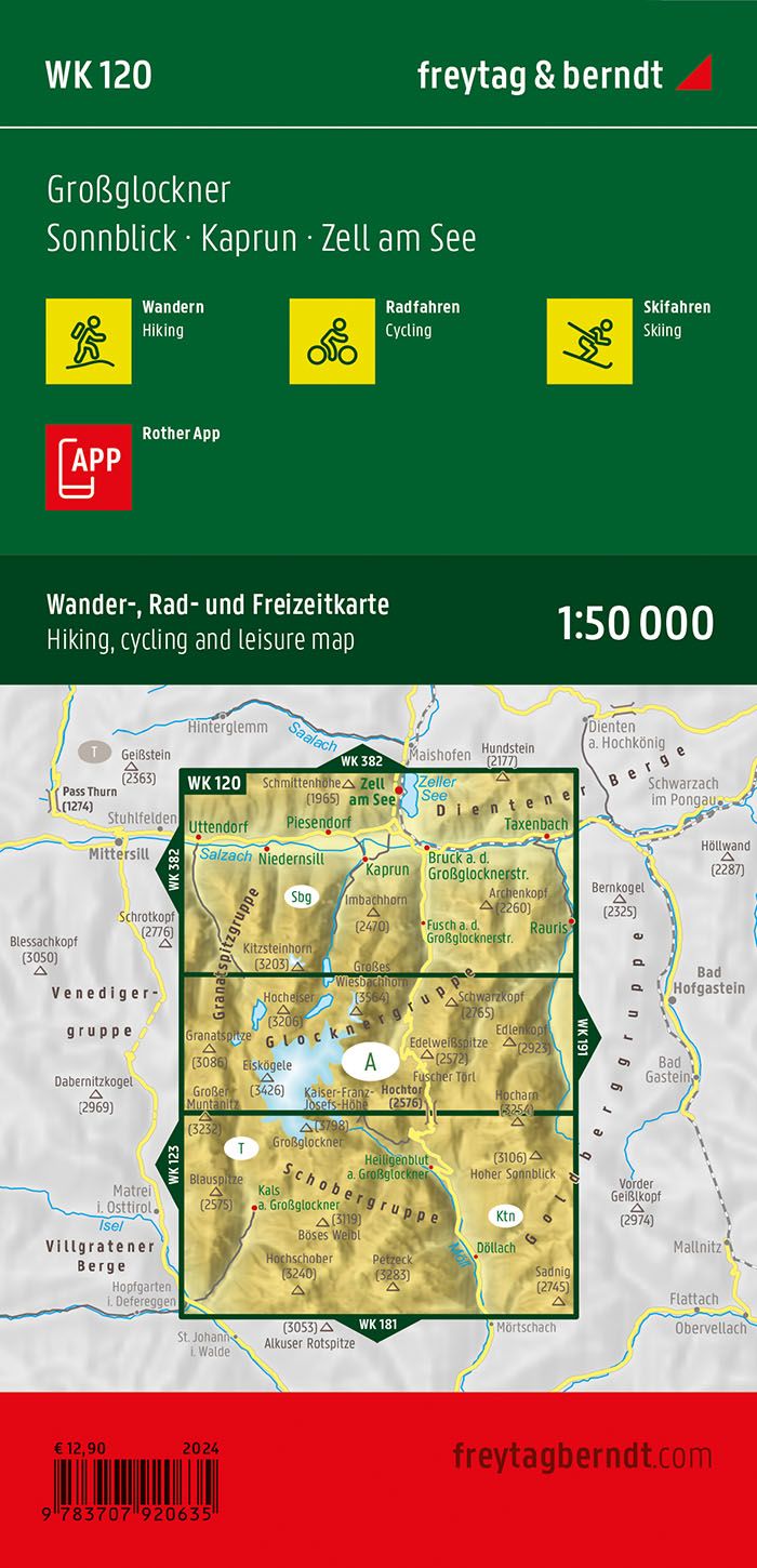 Kaarten en gidsen > Wandelen > Wandelkaarten > Europa > Zwitserland en Oostenrijk (en Alpen als geheel) > Oostenrijk > Salzburger Land & Stiermarken > WK-120 Grossglockner,Sonnblick,Kaprun,Zell am See wandelkaart 1:50.000