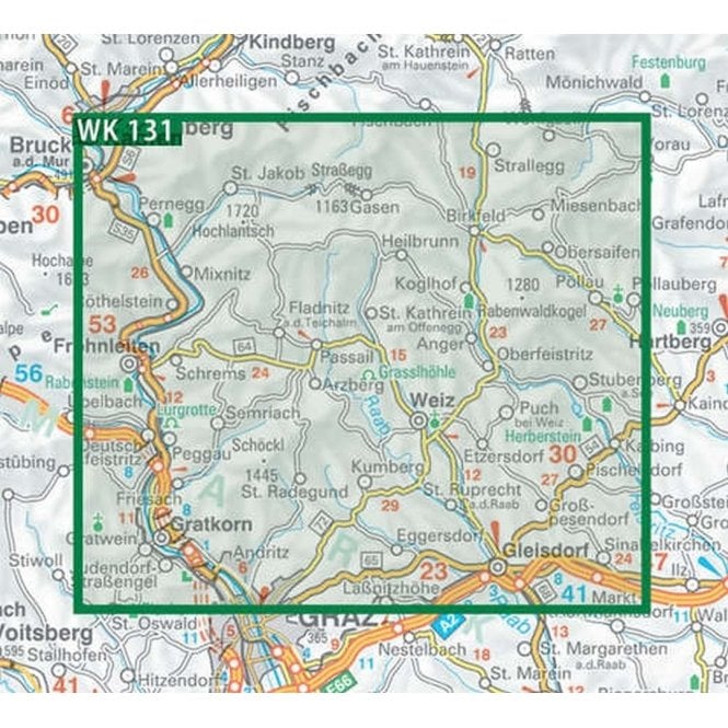 Kaarten en gidsen > Wandelen > Wandelkaarten > Europa > Zwitserland en Oostenrijk (en Alpen als geheel) > Oostenrijk > Karinthië > WK-131 Grazer Bergland,Schöckl,Teichalm wandelkaart 1:50.000
