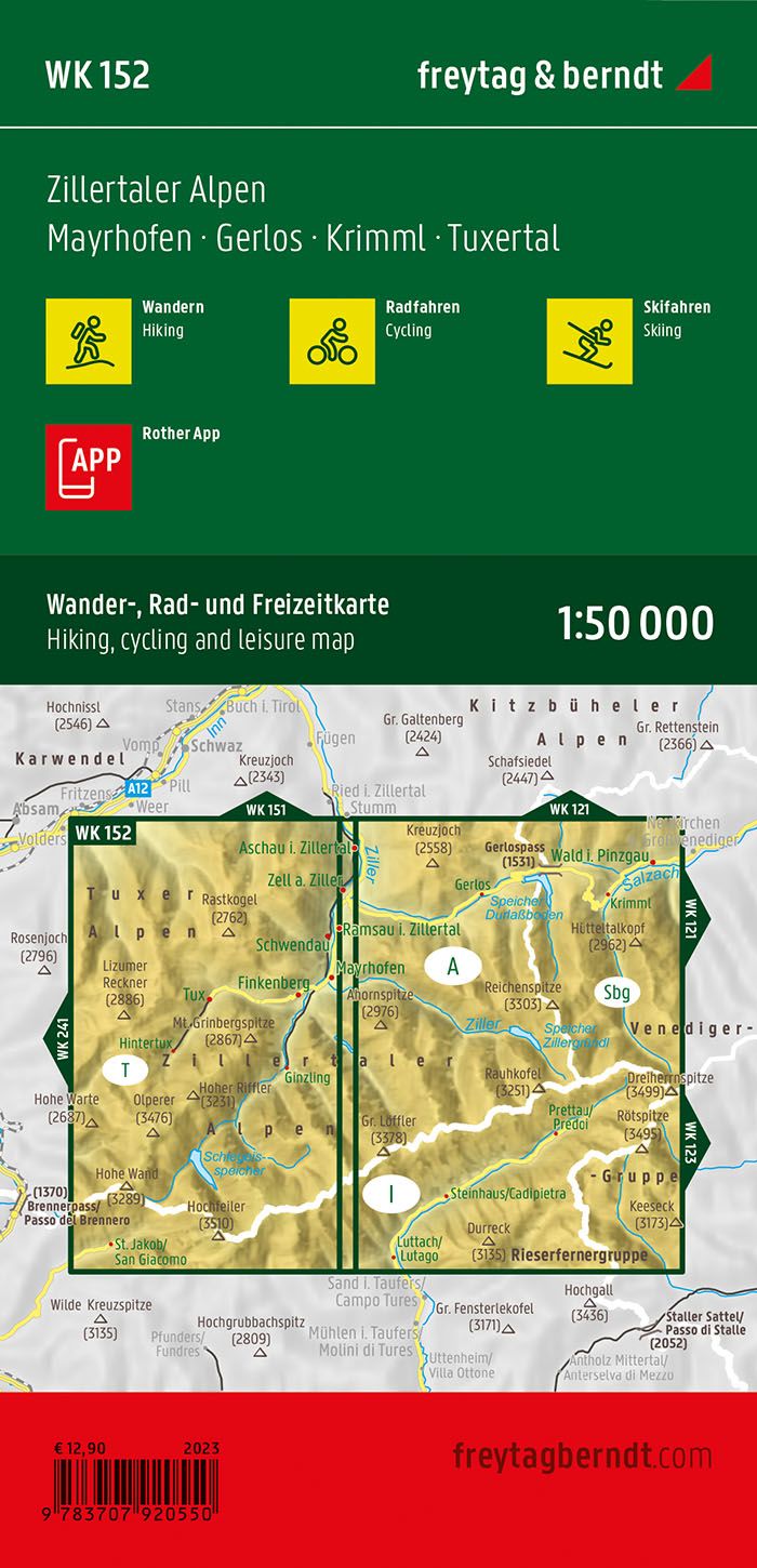 Kaarten en gidsen > Wandelen > Wandelkaarten > Europa > Zwitserland en Oostenrijk (en Alpen als geheel) > Oostenrijk > Tirol > WK-152 Mayrhofen,Zillertaler A.,Gerlos,Krimml wandelkaart 1:50.000