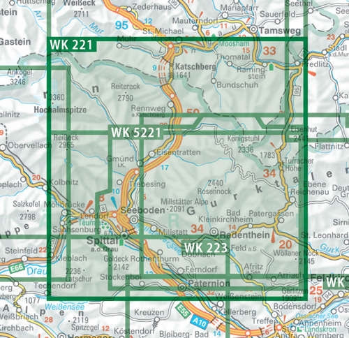 Kaarten en gidsen > Wandelen > Wandelkaarten > Europa > Zwitserland en Oostenrijk (en Alpen als geheel) > Oostenrijk > Karinthië > WK-221 Millstätter See,Spittal,Nockalmstrasse wandelkaart 1:50.000