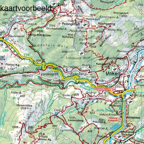 Goede wandelkaart. Plus (volgens de uitgever): 'Kulturführer Ortsregister mit Postleitzahlen Radwander + Mountainbikerouten GPS Punkte Schi + Langlaufrouten'. Titel uit ons assortiment Wandelkaarten Oostenrijk. Klik op geografisch overzicht voor de bladindeling, de blauwe kaders zijn de kaarten 1:50.000. Zie hier rechtsonder een voorbeeld van de Freytag&Berndt cartografie.