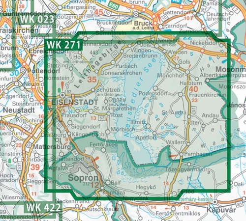 Kaarten en gidsen > Wandelen > Wandelkaarten > Europa > Zwitserland en Oostenrijk (en Alpen als geheel) > Oostenrijk > Oberösterreich, Niederösterreich, Burgenland > WK-271 Neusiedler See,Rust,Seewinkel wandelkaart 1:50.000