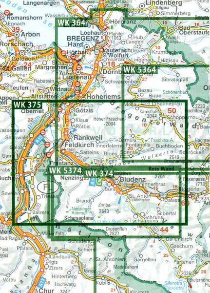 Kaarten en gidsen > Wandelen > Wandelkaarten > Europa > Zwitserland en Oostenrijk (en Alpen als geheel) > Oostenrijk > Vorarlberg > WK-375 Großes Walsertal, Feldkirch, Bludenz, Laterns