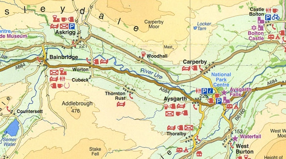 Overzichtskaart over Yorkshire Dales, Nidderdale. Mooie kaart, heel gedetailleerd, prima als overzicht en voor het maken van fietsroutes (geen routes op de kaart - die moet je zelf verzinnen). Terreingesteldheid en reliëf, plus uiteraard alle bebouwing en grote en kleine wegen zijn duidelijk weergegeven.